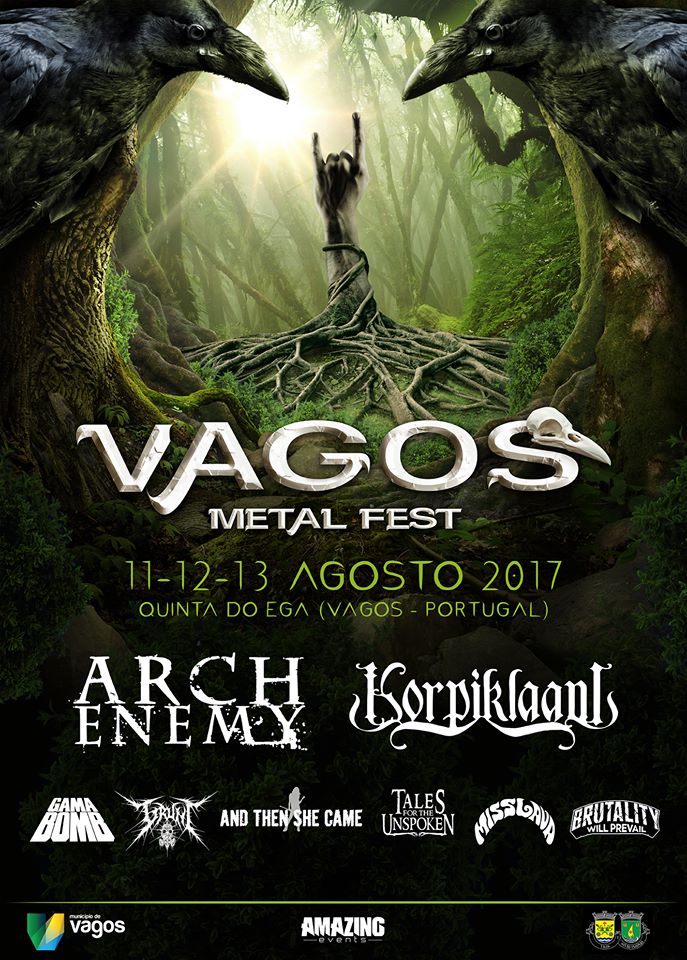 [ING] This year is still far from ending but Vagos Metal Fest organization is already preparing next edition. After presenting the new logo today were announced the first names appearing in the poster and some more things. Starting with the names, Vagos will welcome Swedish Arch Enemy, Finnish Korpiklaani, Irish Gama Bomb, Portuguese Miss Lava and Tales For The Unspoken, German And Then She Came and British Brutality Will Prevail and Grunt. Was also announced the special price of 50€ for the 3 days, limited to the first 500 purchases. To get yours head here. \m/